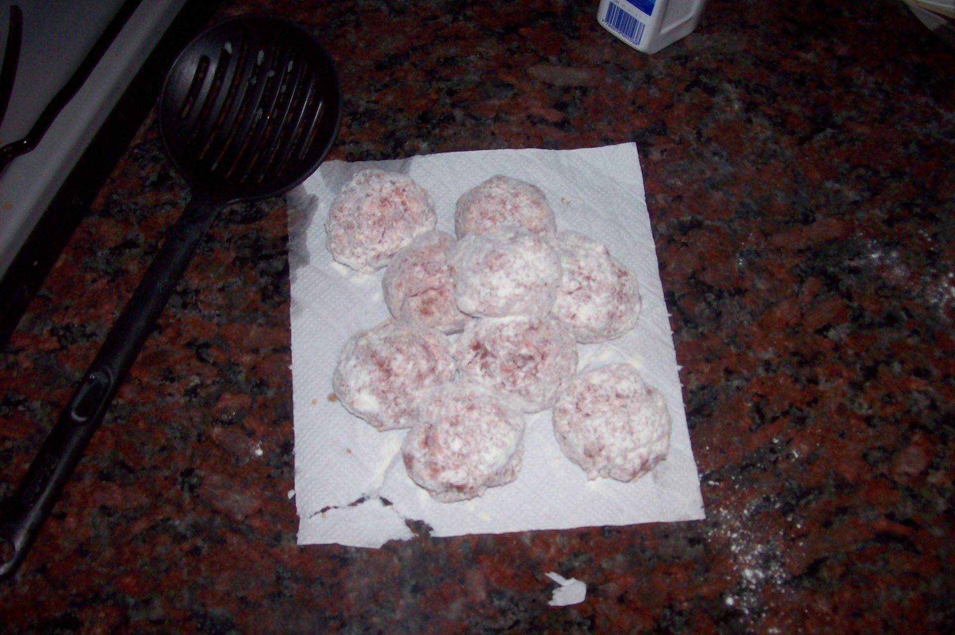 2- luego comencé a hacer las albóndigas, de un tamaño considerable, salieron 15, las sellé como me dijiste, una vez mezclado todos los condimentos, y las puse a freir.