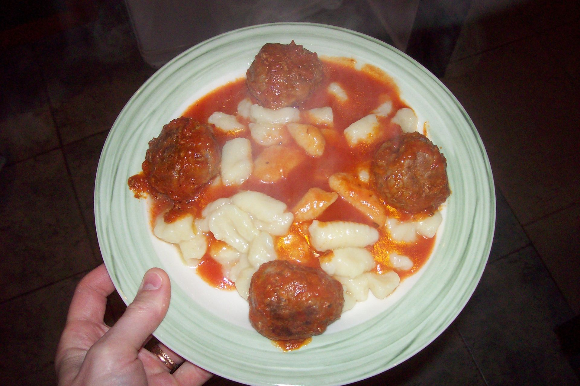 Bueno, entonces ya tenemos: las albóndigas, el tuco, los ñoquis.