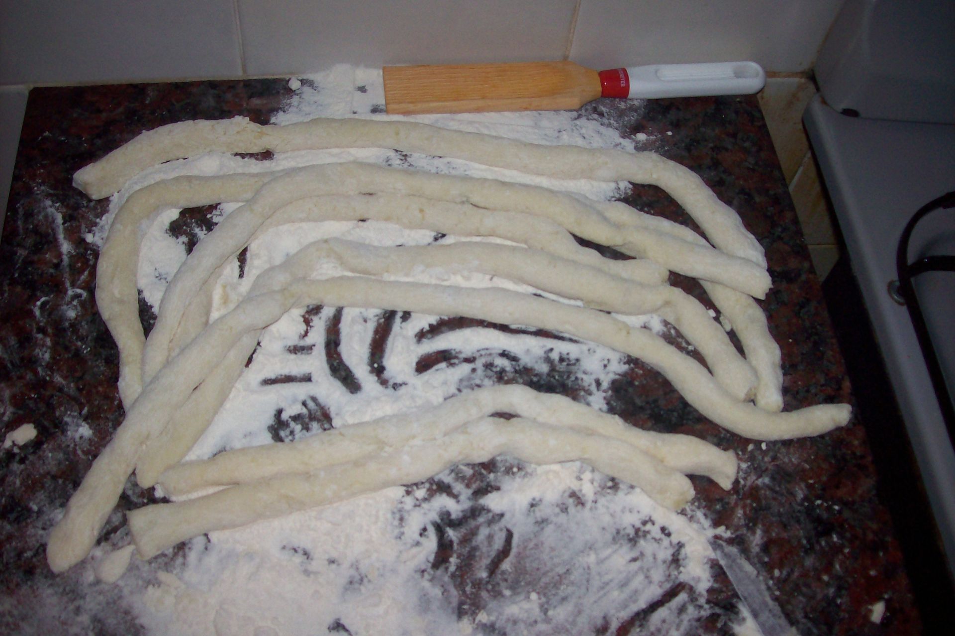 5- ya tenía todo listo, las albóndigas, la salsa, la masa…. y comencé hacer los ñoquis, cortándolos mediano, ni muy grandes, ni muy pequeños, por eso me tomé el trabajo de calcularlos a todos de manera proporcional. Ese trabajo me demoró bastante, un total de 2 horas (bastante tiempo), pero valió el esfuerzo…