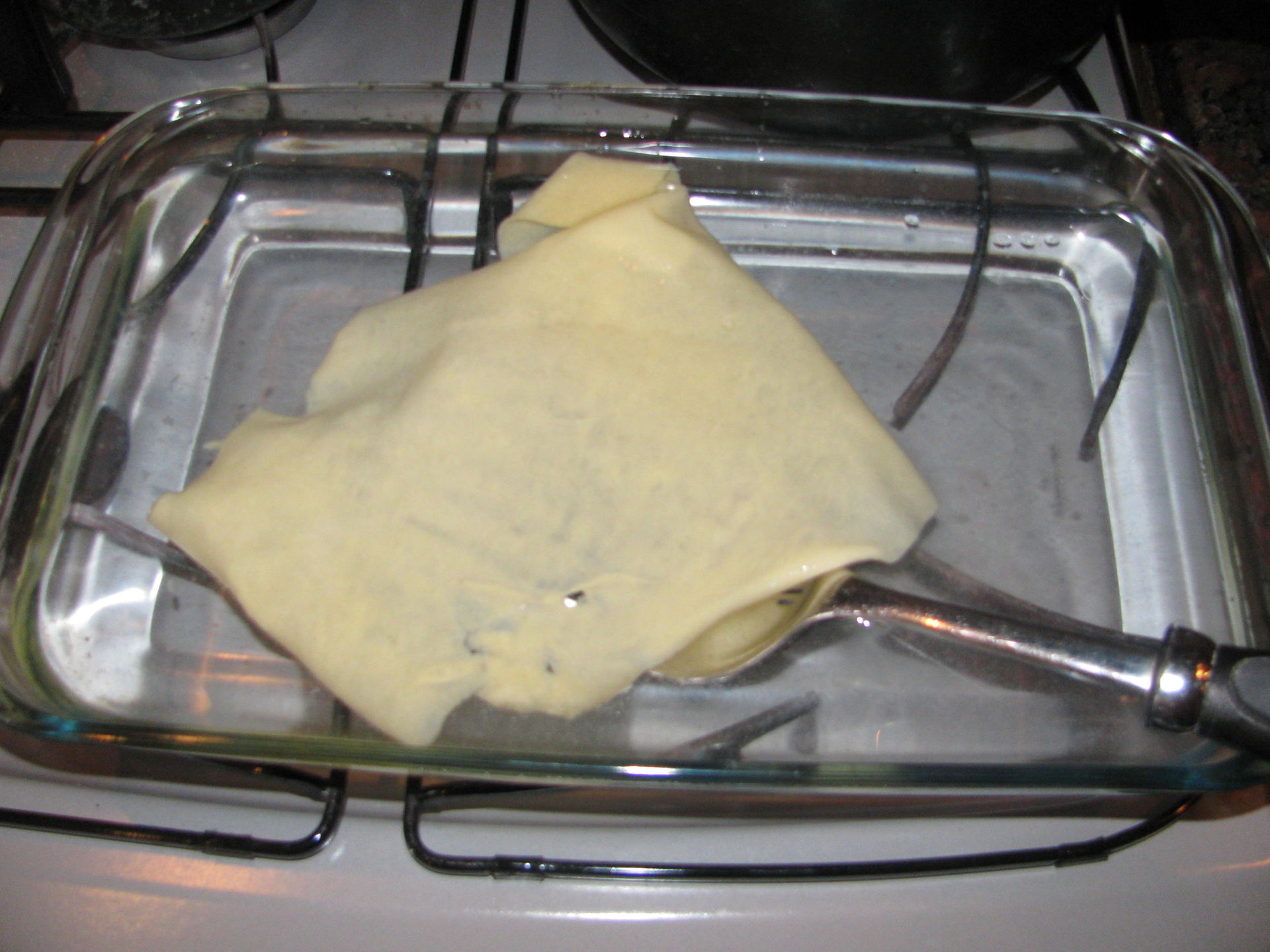 1) Hervir una masa, una vez que queda consistente (dura) la pasamos rápido con una espatula (con cariño q se rompen !) a agua bein fría para parar el proceso de cocción. De ahí va al recipiente con manteca hasta lograr que quede toda cubierta la superficie.