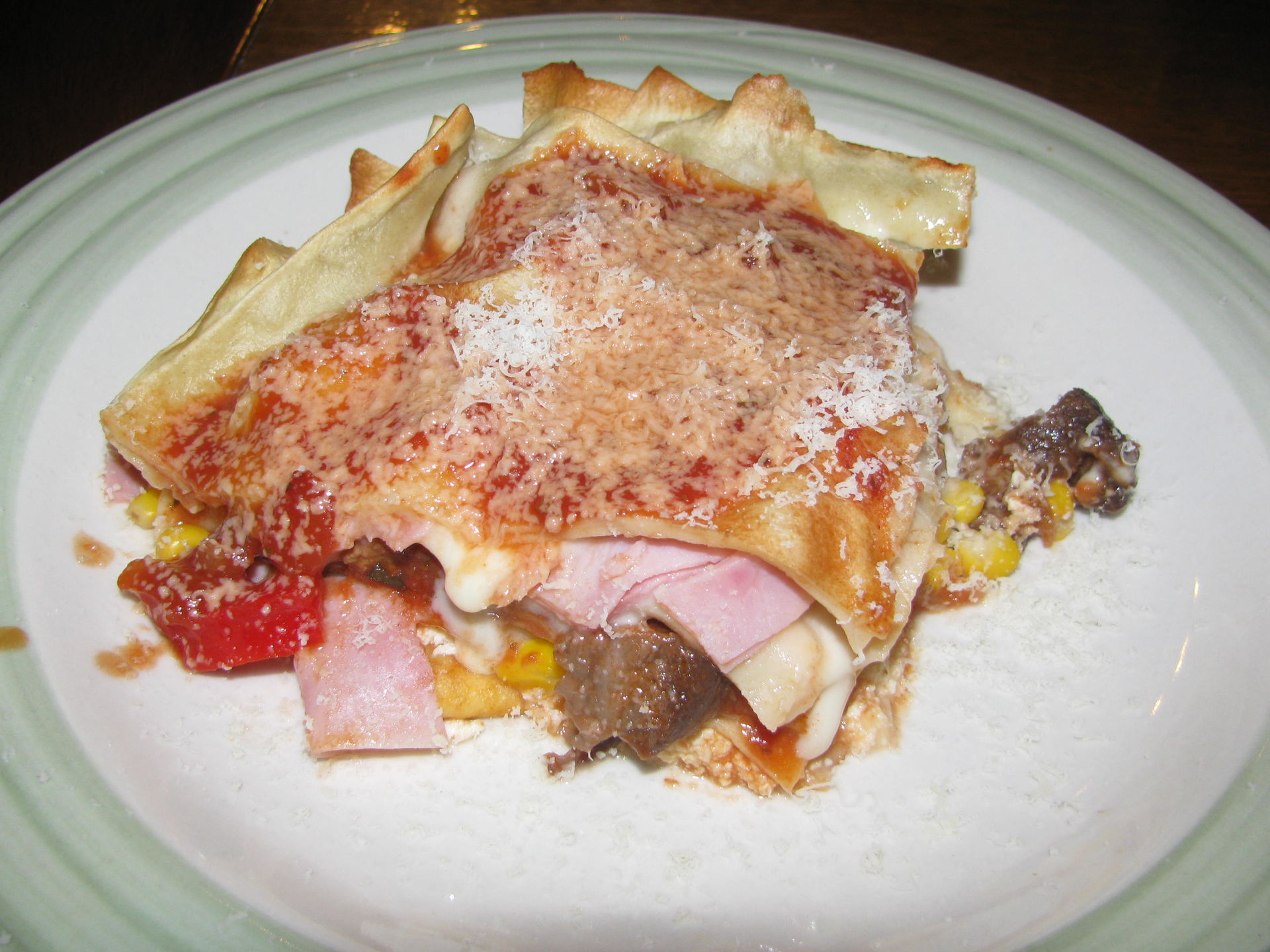 De nuevo, tapamos este relleno y ponemos el siguiente (ej: ricota). Idem luego con el queso y jamón.