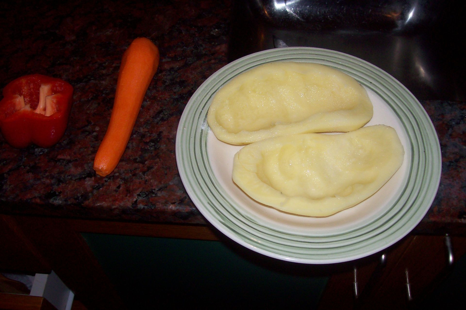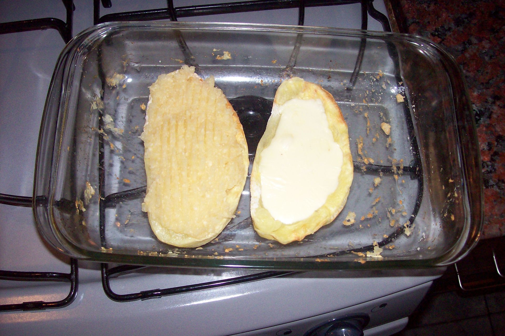Mientras se hace el lomo, tomar una papa, cortarla al medio con mucho cariño de manera horizontal lo mas uniforme posible (como para Sofovich 😛 ) y ahuecarla con una cuchara o herramienta para ese motivo.