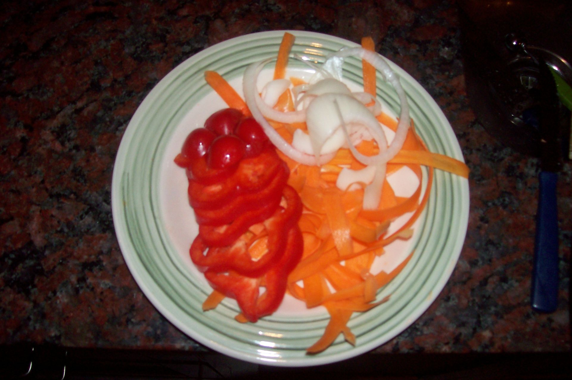 2) 1 zanahoria, 1cebolla chica, 1 pedazo de morrón.