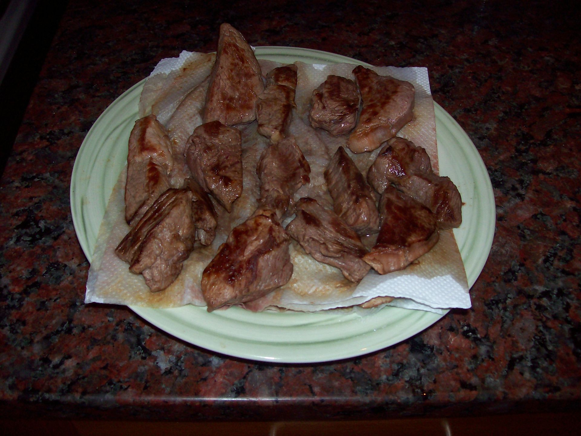 Luego de ello se retiran los lomos y se ponen en un plato con papel de cocina por arriba y por abajo para que absorban el excedente de jugos y repetimos nuevamente en caso de tener mas lomo que cocinar.