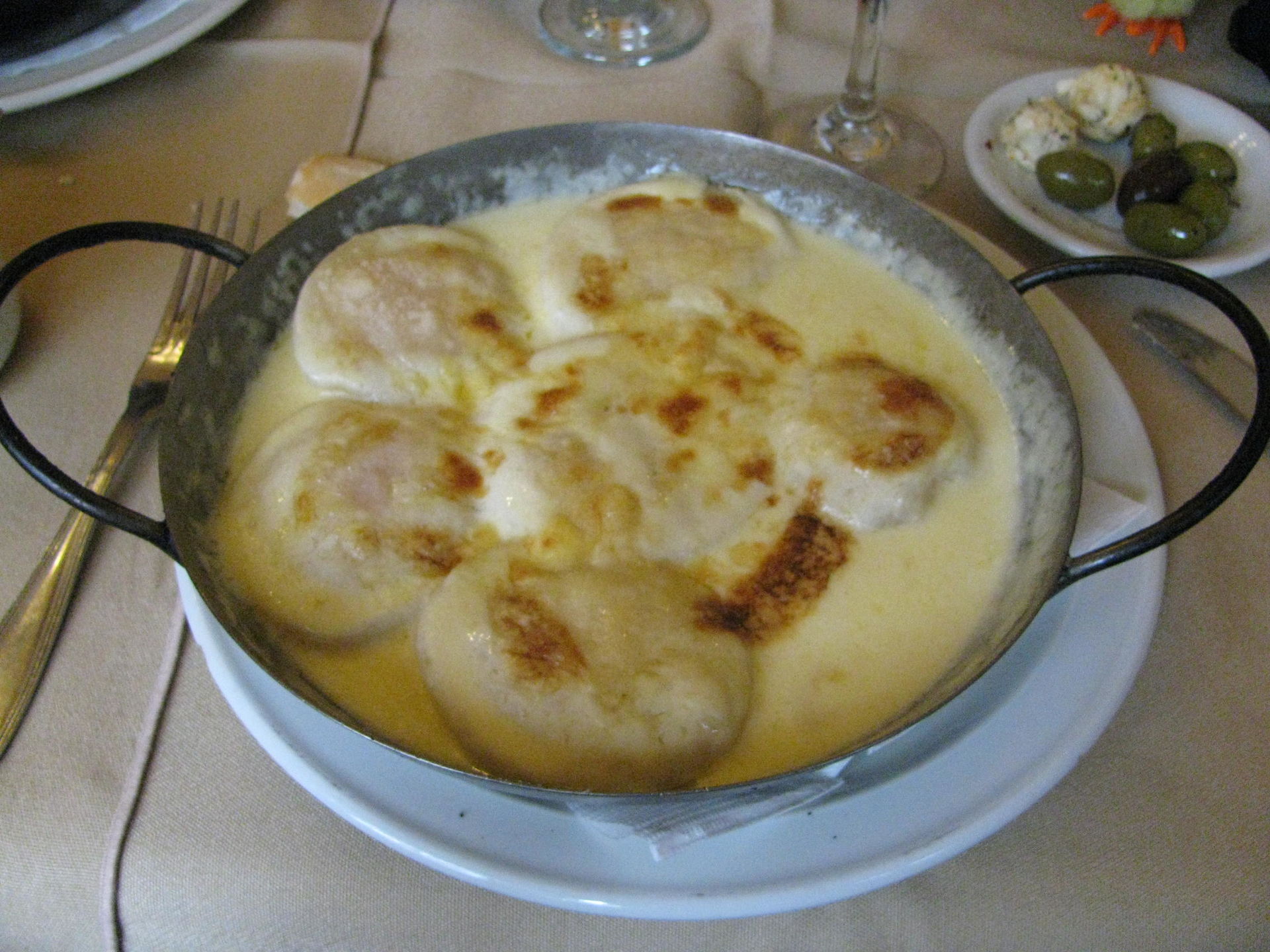 Pedimos 2 platos de sorrentinos de jamón, queso y nuez a la crema gratinados, y un plato de ñoquis mixtos a la crema, también gratinados.