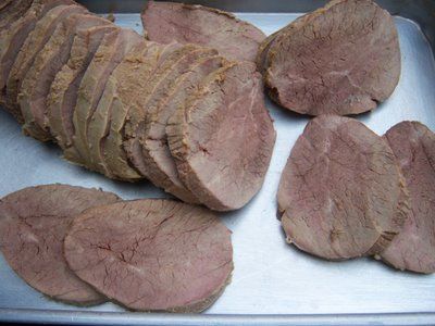 1- Una vez que esté bien cocido el peceto, colocar en heladera y dejar enfriar para poder cortarlo en rodajas bien finitas. Reserve.