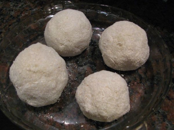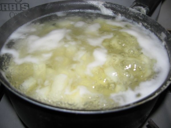 Mientras los lomos se cocinan en el horno, verificar que las papas estén cocidas y retirarles el agua. Poner una cucharada mediana de manteca, sal y un chorro de leche. Luego hay que hacer puré aplastando las papas y la consistencia del mismo tiene que quedar bastante dura, con la idea que las bolas de papa no se te desarmen en las manos.