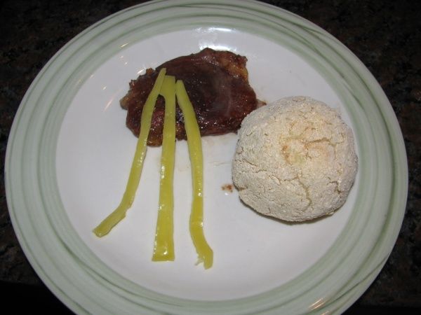 La verdad que no soy muy bueno presentando los platos, primero porque no soy chef, segundo porque priorizo el ir a comer y tercero porque se me enfría la comida !. Tomar 1 o 2 trozos de lomo, rociarlos con la salsa restante, poner el bollo de puré y decorar con algo que tengas a mano ( en este caso tenía unos ricos ajíes al vinagre). Nada más, es un rico plato y se puede hacer con otros cortes, no solamente con lomo. Les dejo unas imágenes.