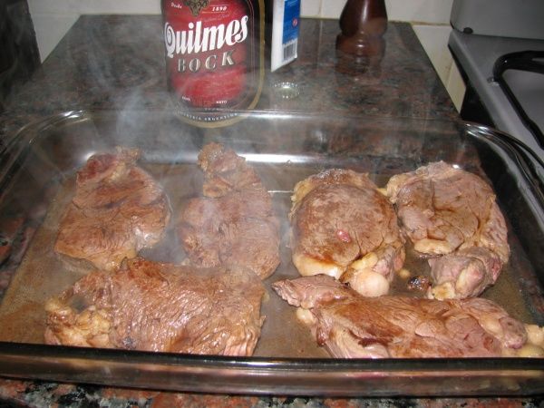 – Cortar las papas en cubos y ponerlas a hervir en una olla con agua. Prender el horno. Posteriormente aceitar una sartén con oliva e ir sellando los bifes de lomo de ambos lados, una vez que están sellados agregarles chorros de cerveza para que vayan tomando el sabor. Repetir la operación hasta que los bifes de lomo estén listos, y en un recipiente para el horno ponerlos con la base de la salsa de cerveza que haya quedado. Poner al horno a fuego medio (depende como quieras la cocción). Ir agregando chorros de cerveza a medida que se evapora la salsa (recomiendo que la cerveza esté natural).