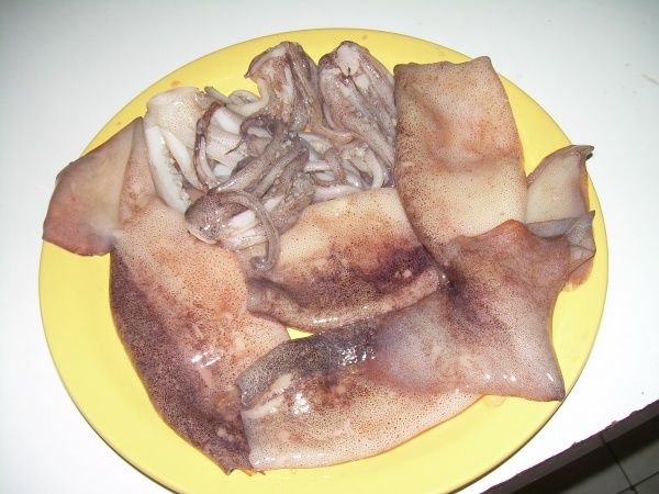 Lavar y pelar los calamares. (En lo posible que se los limpien en la pescadería).