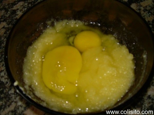 Batir la manteca con el azúcar, agregarle de a uno los huevos, de a poco a ésta preparación incorporarle la harina leudante, luego que la masa este bien homogénea, verter el jugo de la naranja y la vainilla.