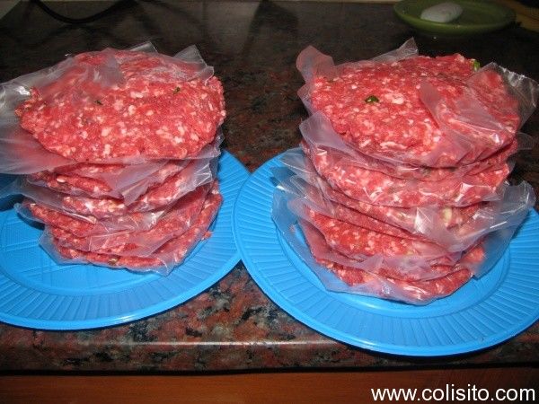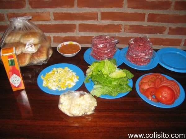 – Carne picada especial (se calculan 120gr por hamburguesa por persona, en mi caso 2 per cápita, casi 2 kilos para que queden generosas).