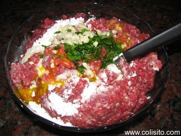 Poner en un bol la carne picada e ir revolviendo a medida que se van agregando los ingredientes, recomiendo empezar por el huevo, y posteriormente el resto.