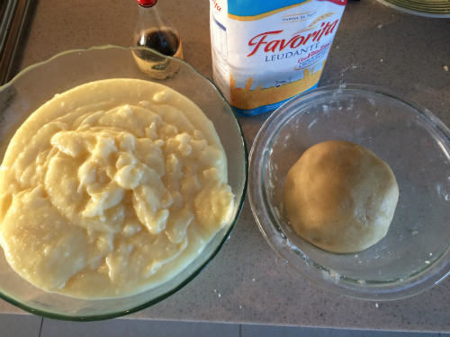 Mezclar los ingredientes, empezando por integrar la manteca con el harina. Agregar agua o un huevo para dar humedad a la harina.