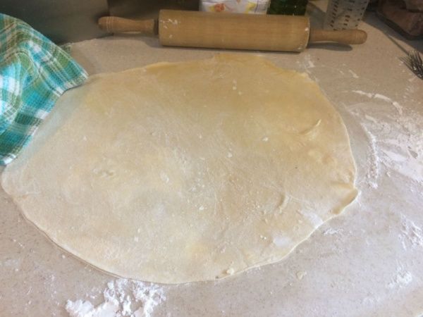 Para armar la masa (ya he contado esto en unas cuantas recetas) Tomar la harina, agregarle los huevos y el aceite mas la sal, y amasar hasta que quede una masa uniforme. Reservarla 30 minutos. Yo últimamente para estirar la masa uso un palo de amasar porque la pastalinda me da fiaca….